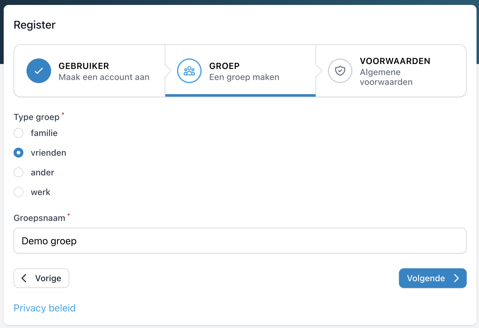 Om gebruik te maken van deze app heb je een account nodig en minimaal 1 groep. Hieronder uitgelegd om dat aan te maken.